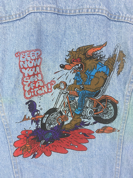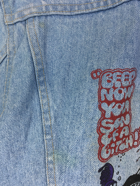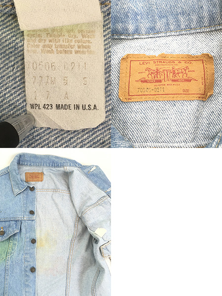 古着 80s USA製 Levi's 70506-0211 「ホットロッド」 アート ハンド ポケット付 ブルー デニム トラッカー ジャケット Gジャン S