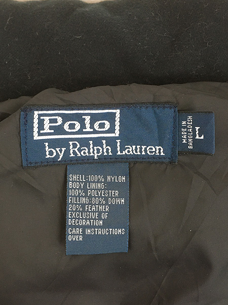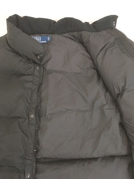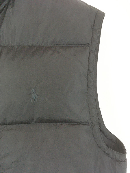 古着 90s Polo Ralph Lauren ワンポイント 軽量 シェル ナイロン ダウン ベスト オールブラック L