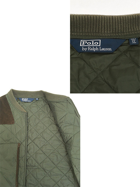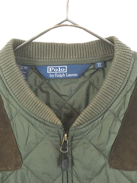 古着 90s Polo Ralph Lauren 本革 スエード レザー ガンパッチ キルティング ベスト XL