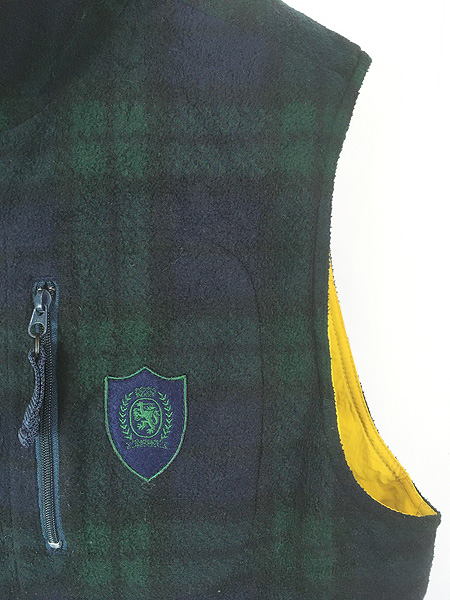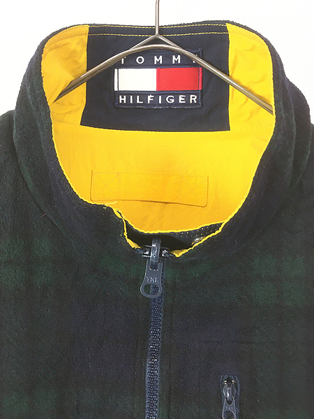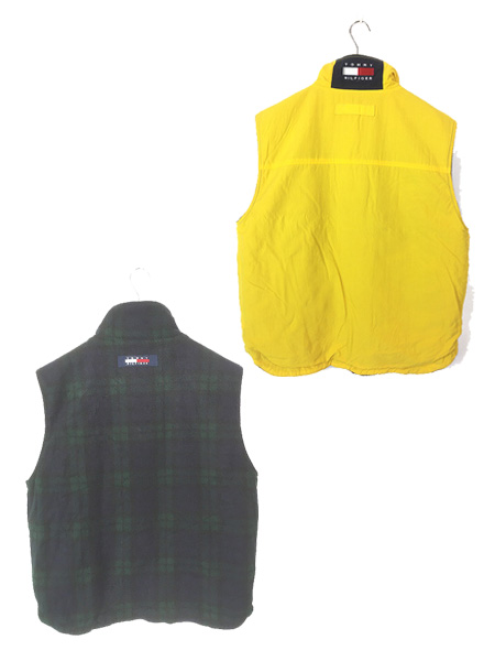 古着 90s TOMMY HILFIGER ナイロン × ブラックウォッチ チェック フリース リバーシブル ベスト
