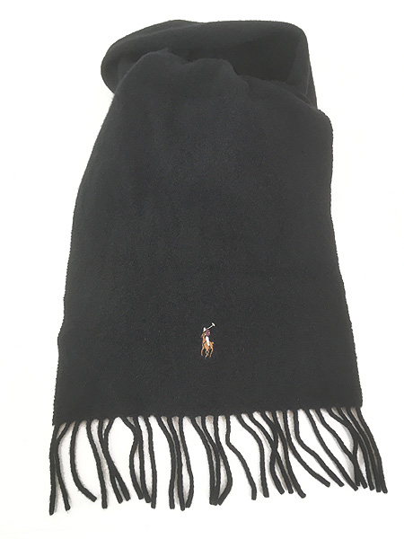 雑貨 古着 Italy製 Polo Ralph Lauren ワンポイント ポニー 刺しゅう ウール マフラー ストール