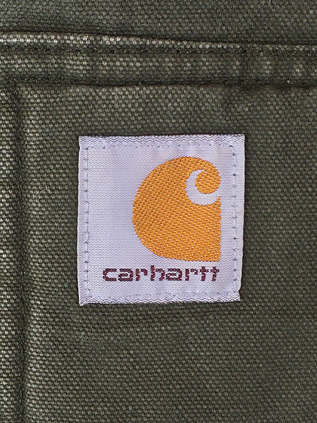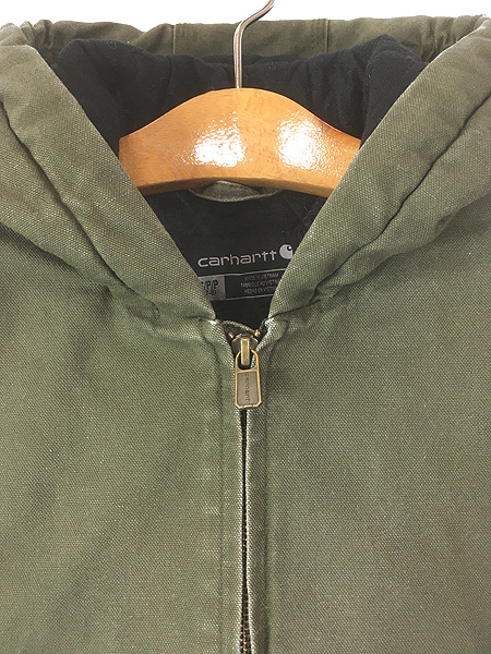キッズ 古着 Carhartt 防寒 裏地 キルティング セパポケ モスグリーン ダック ワーク アクティブ パーカー S 7-8歳