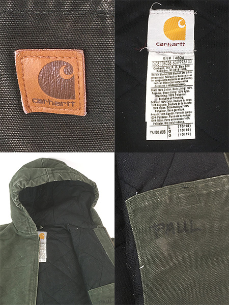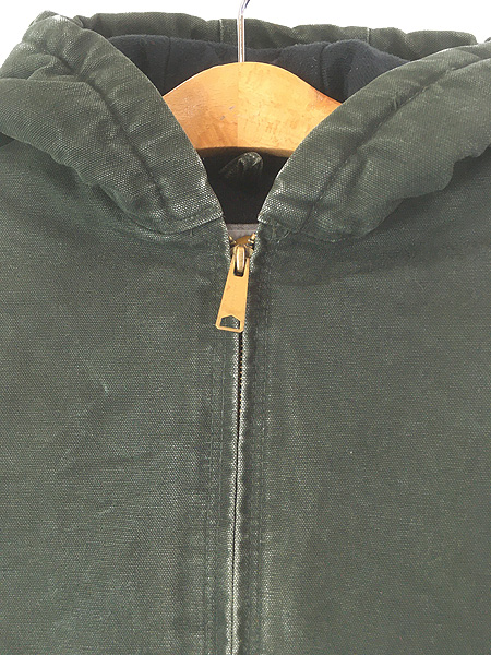 キッズ 古着 00s Carhartt 防寒 裏地 キルティング MOS モスグリーン ダック ワーク アクティブ パーカー L 10-12歳