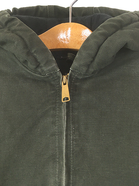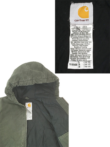 キッズ 古着 00s Carhartt 防寒 裏地 キルティング MOS モスグリーン ダック ワーク アクティブ パーカー L 10-12歳