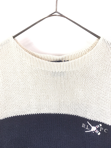 古着 90s Polo Ralph Lauren RLPC 3カラー ボートネック コットン ニット セーター M