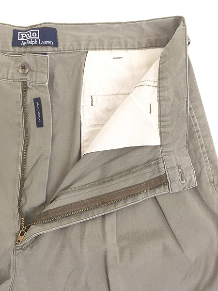 古着 90s Polo Ralph Lauren 「HAMMOND PANT」 タック チノ パンツ テーパード カーキ W35 L31