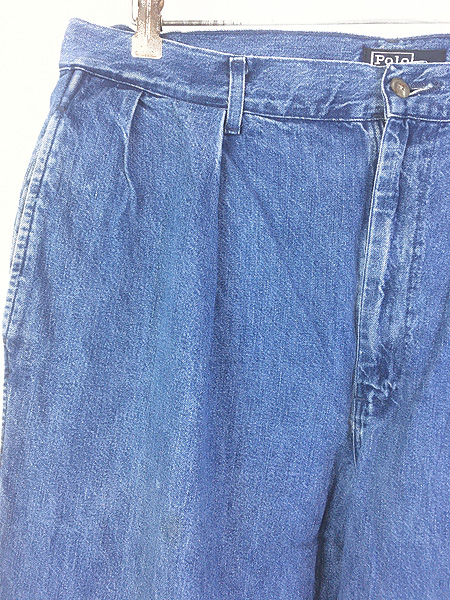 古着 90s USA製 Polo Ralph Lauren タック デニム チノ トラウザー パンツ ジーンズ テーパード W34 L28