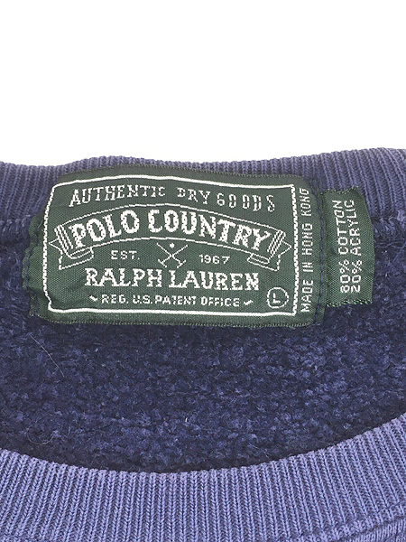 古着 90s POLO COUNTRY Ralph Lauren ポロカン 胸ポケット付き ラグラン スウェット トレーナー ネイビー L