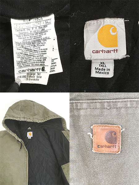 古着 10s Carhartt ARG アーミーグリーン ダック 防寒 パデット アクティブ パーカー ジャケット XL Tall