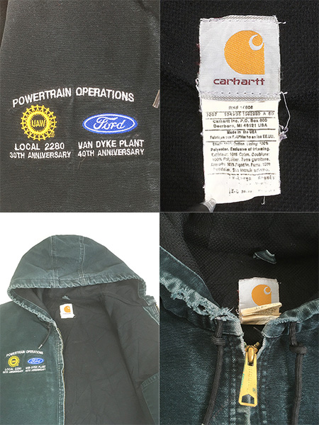 古着 00s USA製 Carhartt BLK 裏地 メッシュ ブラック ダック アクティブ パーカー ジャケット XL