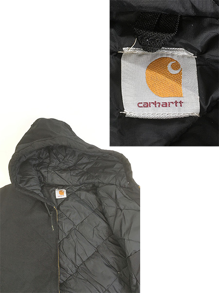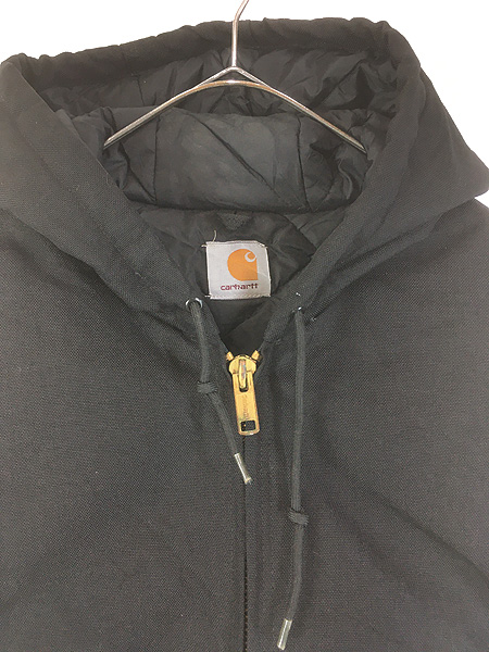 古着 Carhartt ブラック ナイロン ダック パデット アクティブ パーカー ジャケット XXL位