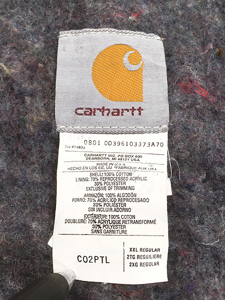 古着 00s USA製 Carhartt 裏地 ストライプ ブランケット PTL ぺトロール ダック ミシガンチョア カバーオール ジャケット XXL