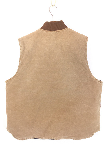 古着 00s Carhartt BRN ブラウン ダック 首リブ パデット ベスト XL