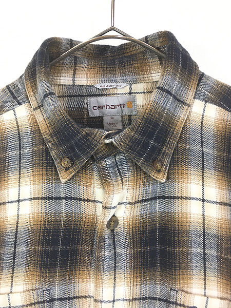 古着 Carhartt オンブレ シャドー チェック フランネル シャツ ネルシャツ M