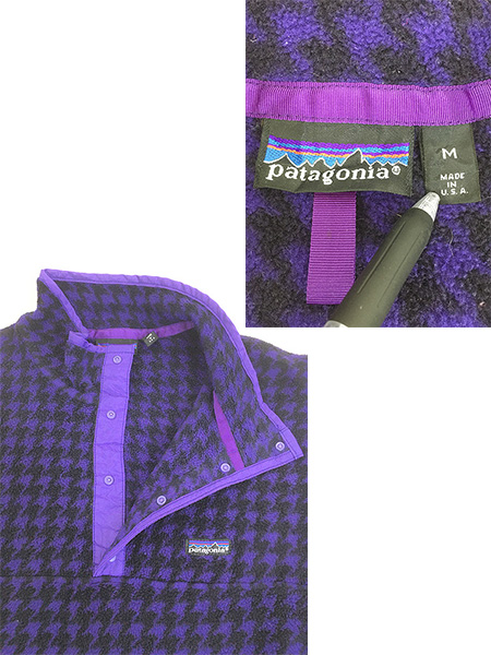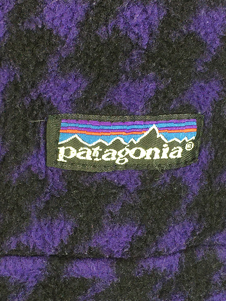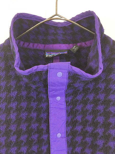 古着 90s USA製 Patagonia 初期 ポケットなし スナップT 千鳥格子 総柄 フリース ジャケット M