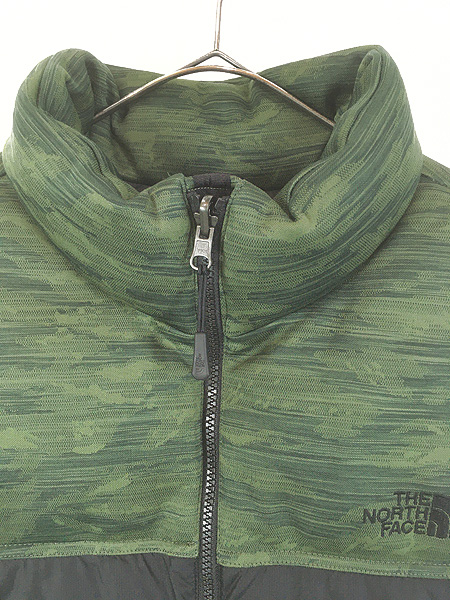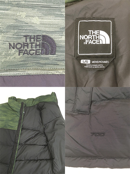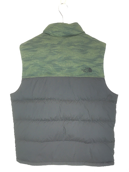 古着 TNF The North Face ブラック×迷彩 グラフィック アート 700 フィル パワー ヌプシ ダウン ベスト L