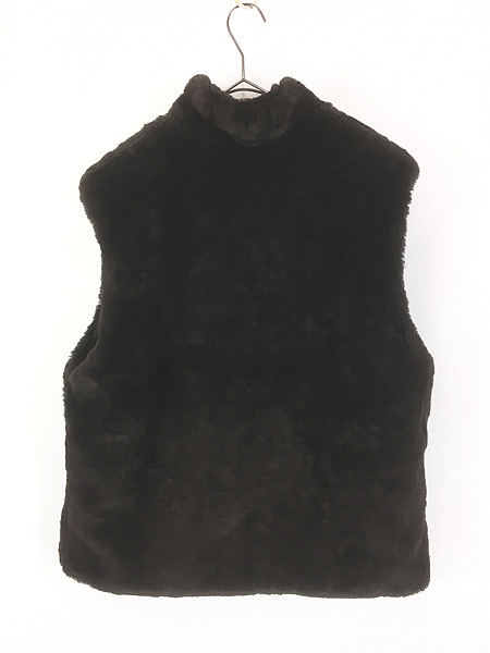 レディース 古着 90s Canada製 Garey フェイクファー スタンドカラー ベスト 10 M位