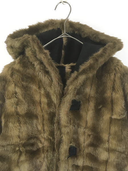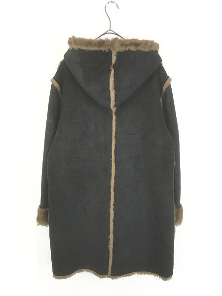 レディース 古着 dennis basso フェイク スエード レザー × ファー ムートン リバーシブル フーディ コート S