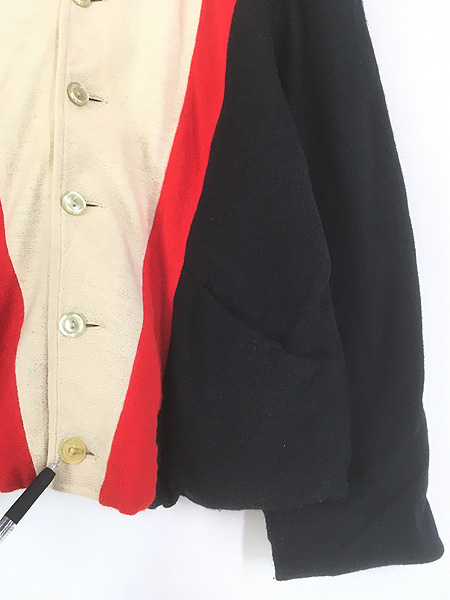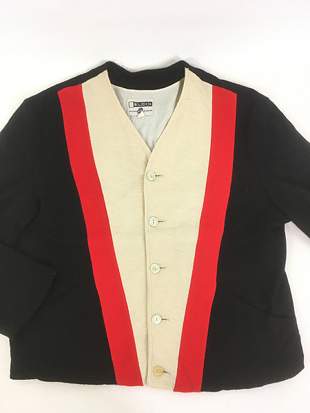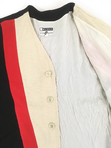 古着 60s BLOCK 3カラー アクリル ニット カーディガン ジャケット L