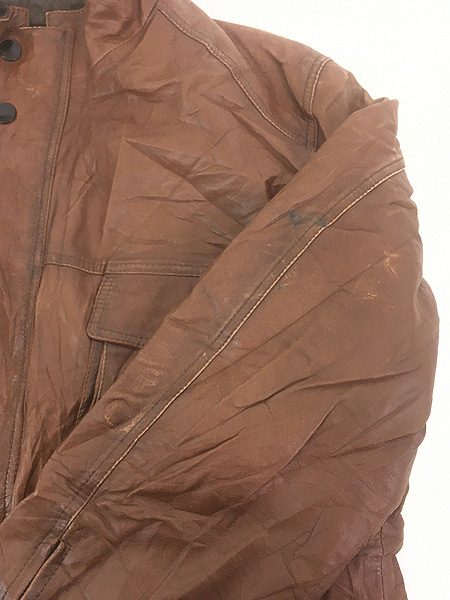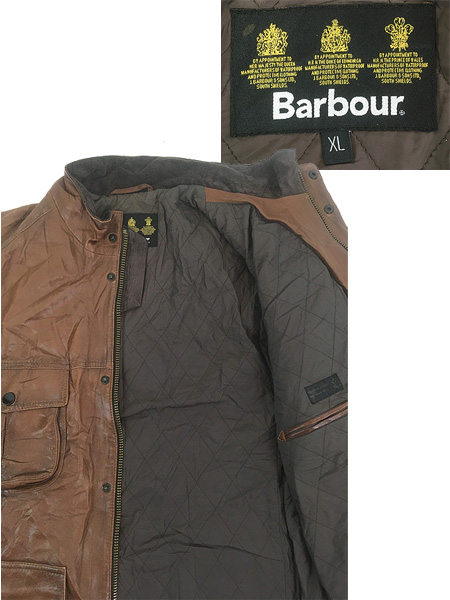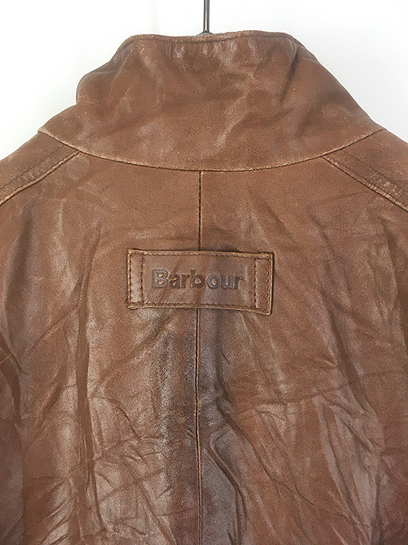 古着 00s Barbour 「Burnished Utility Mahogany」 パデッド 本革 ラム レザー ユーティリティー ジャケット XL