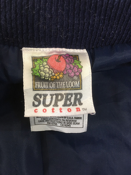 古着 90s Fruit of the Loom リブライン バイカラー スウェット スタジアム ジャケット スタジャン L