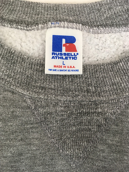 古着 80s USA製 Russell 無地 ソリッド 前V セットイン レーヨン スウェット トレーナー 2tone 霜降り L