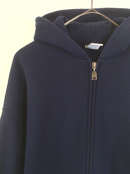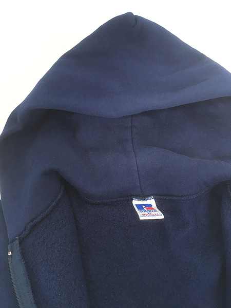古着 90s USA製 Russell 無地 ソリッド セットイン スウェット ジップ パーカー ネイビー XL