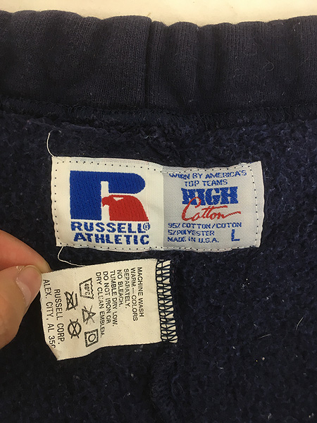 古着 90s USA製 Russell High Cotton 無地 ソリッド ヘビーウェイト スウェット パンツ ポケット付 ネイビー L