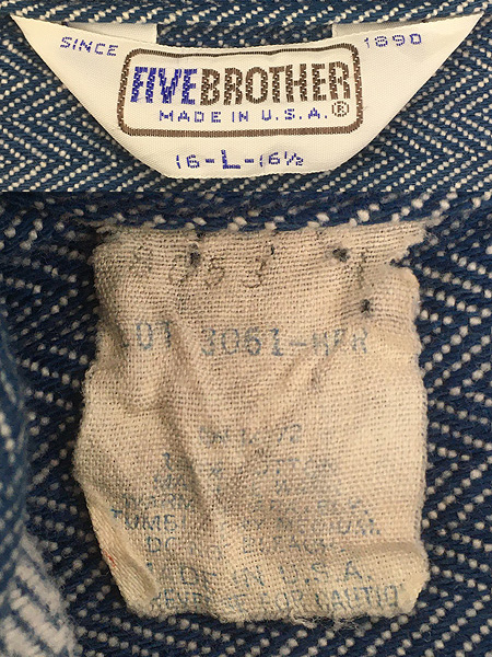 古着 80s USA製 FIVE BROTHER ヘリンボーン ストライプ ヘビー フランネル シャツ ヘビネル L