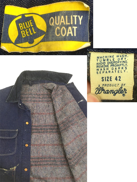 古着 60-70s Wrangler BLUE BELL ブランケット ライナー 濃紺 デニム ワーク カバーオール ジャケット 42