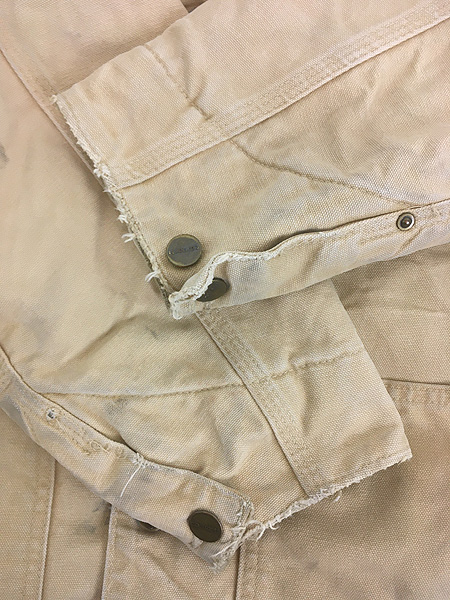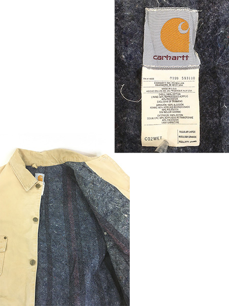 古着 90s USA製 Carhartt 裏地 ストライプ ブランケット WET ウェザード ダック ミシガンチョア カバーオール ジャケット L Regular
