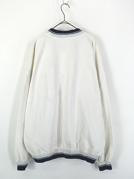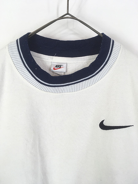古着 90s USA製 NIKE スウォッシュ ワンポイント 刺しゅう リブライン スウェット トレーナー ホワイト XXL