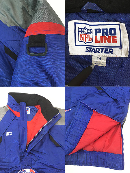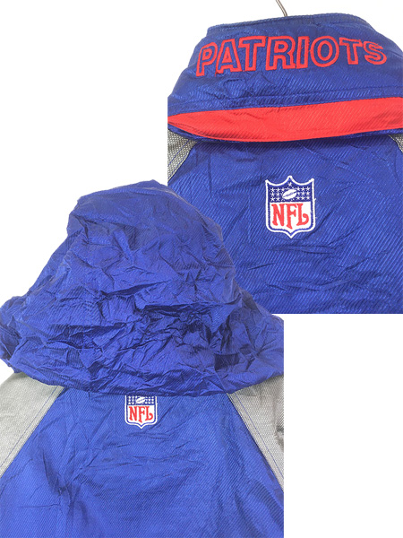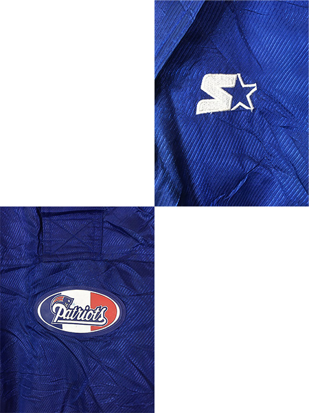古着 90s STARTER NFL New England Patriots ペイトリオッツ ハーフジップ 2way 光沢 ナイロン パデット ジャケット M