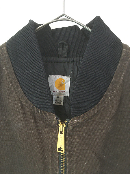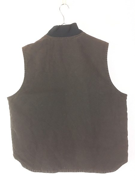 古着 10s Carhartt DKB ダークブラウン ダック 首リブ パデット ベスト XL