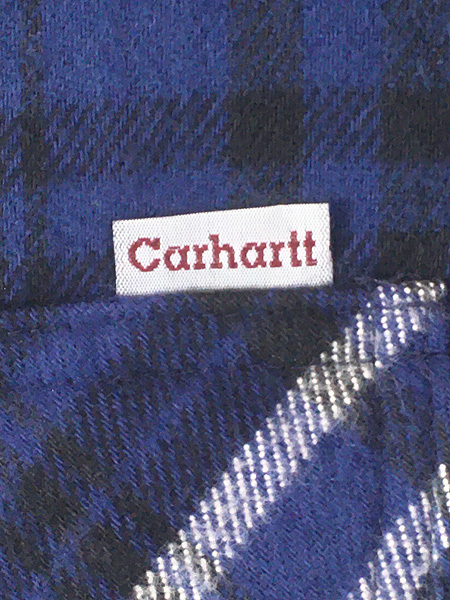 古着 90s USA製 Carhartt ブルー チェック ヘビー フランネル シャツ ヘビネル L Tall