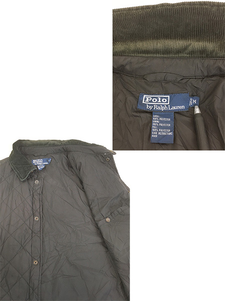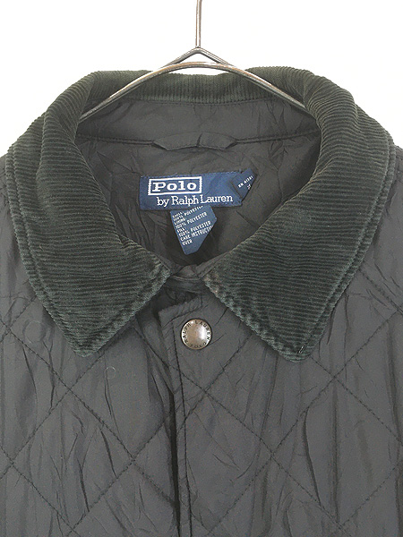 古着 Polo Ralph Lauren 襟 コーデュロイ パデット キルティング コート ブラック M