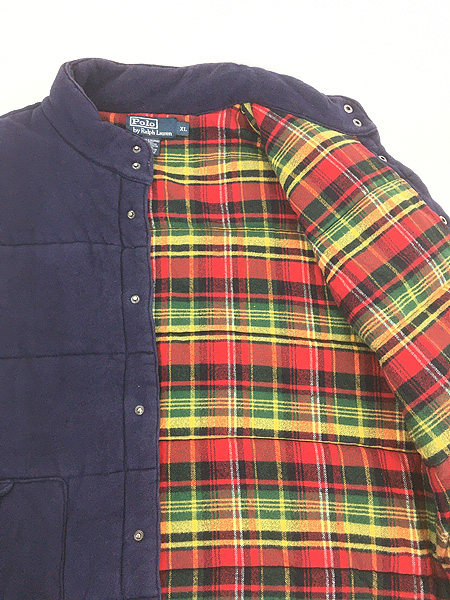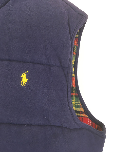 古着 Polo Ralph Lauren ワンポイント ソリッド パデット スウェット ベスト ネイビー XL