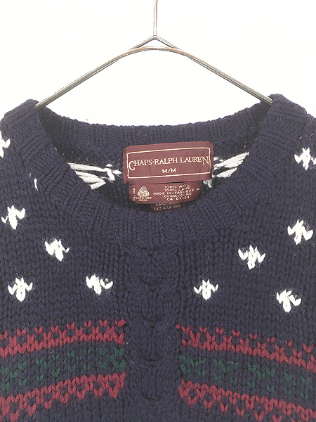 古着 80s CHAPS Ralph Lauren シロクマ フェアアイル ウール ハンド ニット セーター M