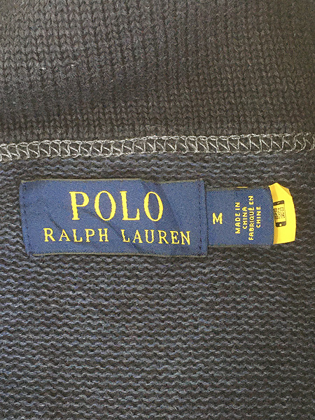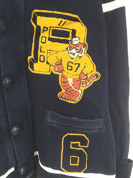 古着 Polo Ralph Lauren パイル タイガー パッチ レタード コットン ニット カーディガン M