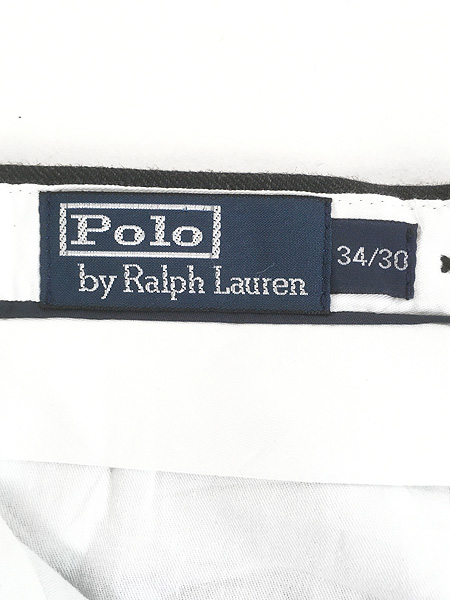 古着 90s Italy製 Polo Ralph Lauren サスペンダー ボタン付 チョーク ストライプ ウール ワイド スラックス パンツ W35 L31