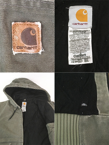 古着 00s Carhartt SAG セージグリーン ダック 防寒 パデット アクティブ パーカー ジャケット S