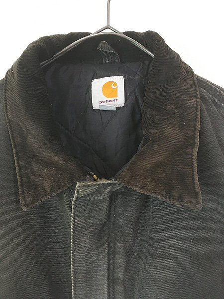 古着 10s Carhartt フェード ブラック ダック パデット トラディショナル コート XL