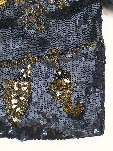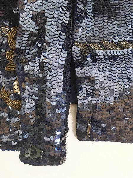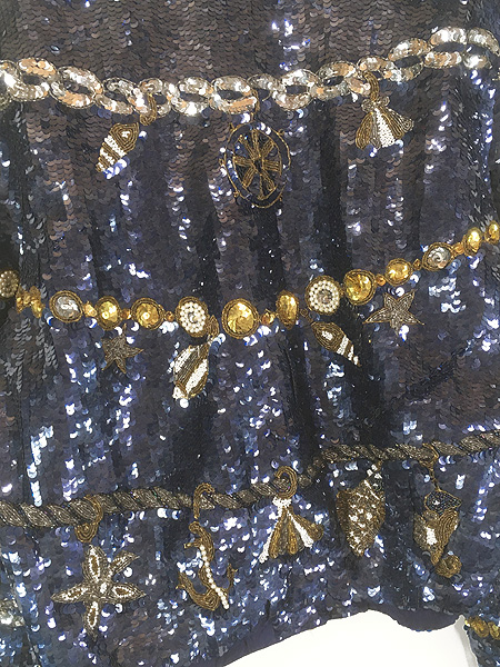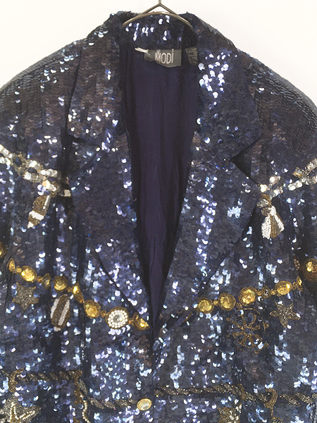 レディース 古着 MODI 鎖 碇 舵 マリン モチーフ シルク スパンコール ジャケット M位