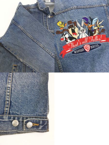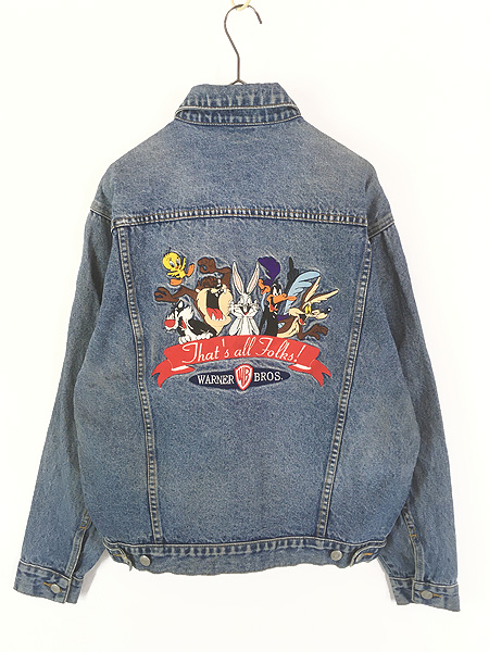 レディース 古着 90s WARNER BROS LOONEY TUNES キャラクター デニム トラッカー ジャケット Gジャン S