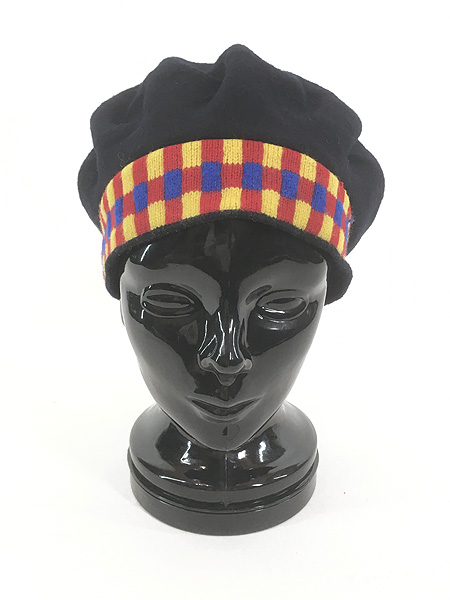 雑貨 古着 80s Canada製 parkhurst チェック ニット ブラック ウール ベレー帽 帽子 M