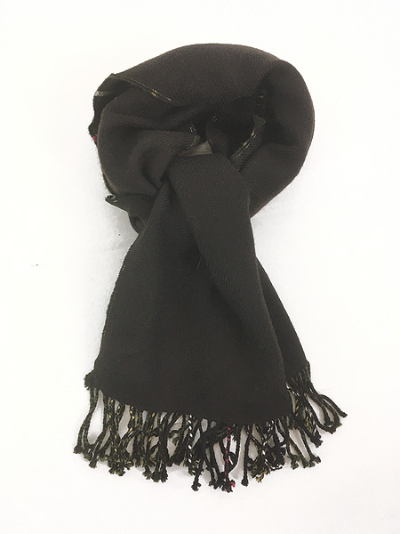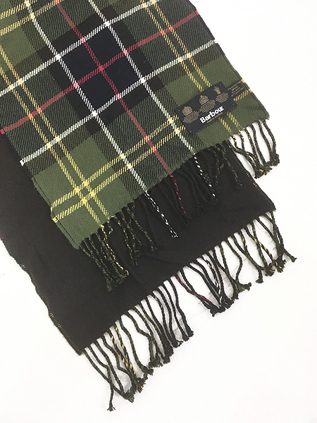 雑貨 古着 Scotland製 Barbour チェック× ブラウン 無地 ウール マフラー ストール