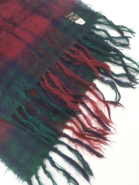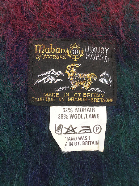 雑貨 古着 英国製 Maban of Scotland チェック モヘア ウール マフラー ストール 大判