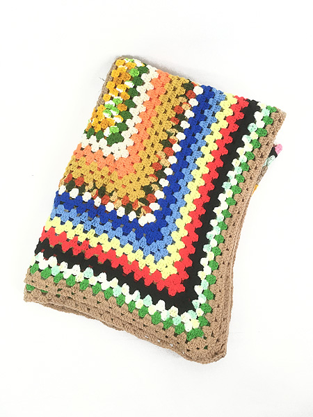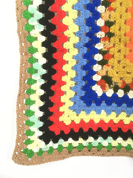 雑貨 古着 70s カラフル マルチ ストライプ ボーダー クロシェ ニット ブランケット ラグ マット