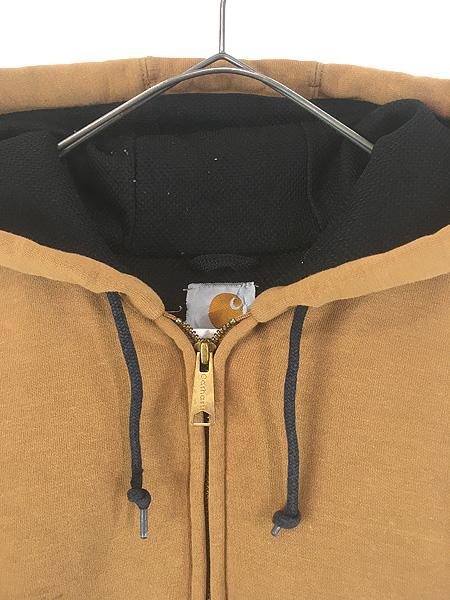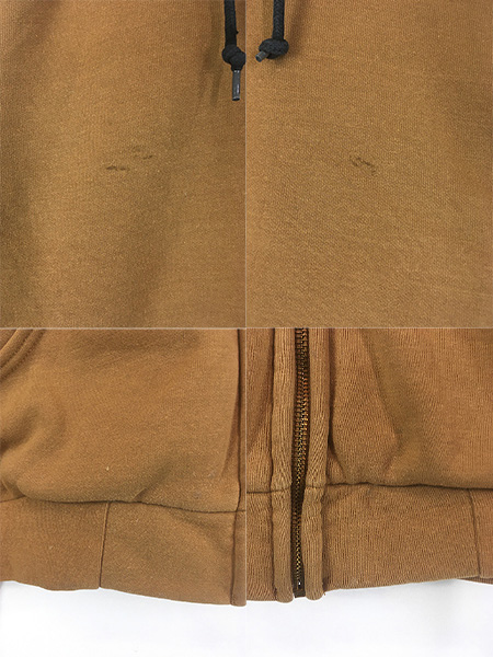 古着 10s Carhartt 裏地 メッシュ ワンポイント パッチ スウェット ジップ パーカー ブラウン M位