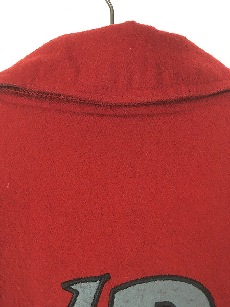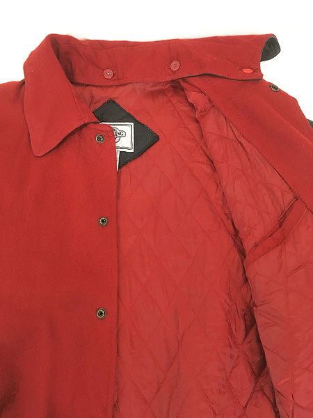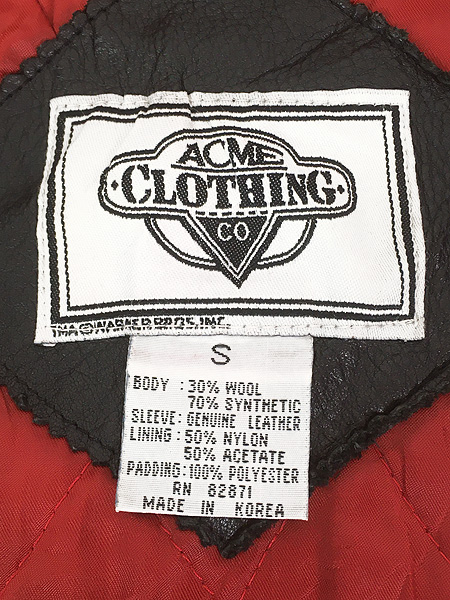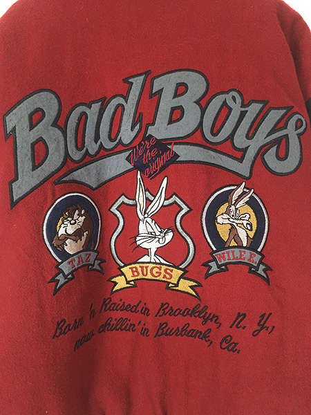 古着 90s LOONEY TUNES 「Bad Boys」 付け襟 2way 本革 レザー × メルトン ウール スタジアム ジャケット スタジャン S
